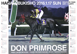 今年1月の第57回花吹雪賞、4月の第15回ル・プランタン賞の優勝馬「ドンプリムローズ号」の馬主 光安 了さまのご厚意により、「第57回花吹雪賞優勝記念2016年カレンダー」を計33名さまにプレゼントいたします。