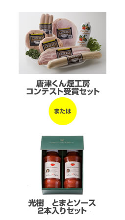オッズパークでは「唐津くん煙工房コンテスト受賞セット」と「光樹 とまとソース2本入りセット」。