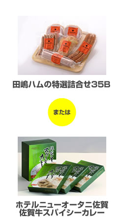 楽天競馬では「田嶋ハムの特選詰合せ35B」「ホテルニューオータニ佐賀 佐賀牛スパイシーカレー」をプレゼント!