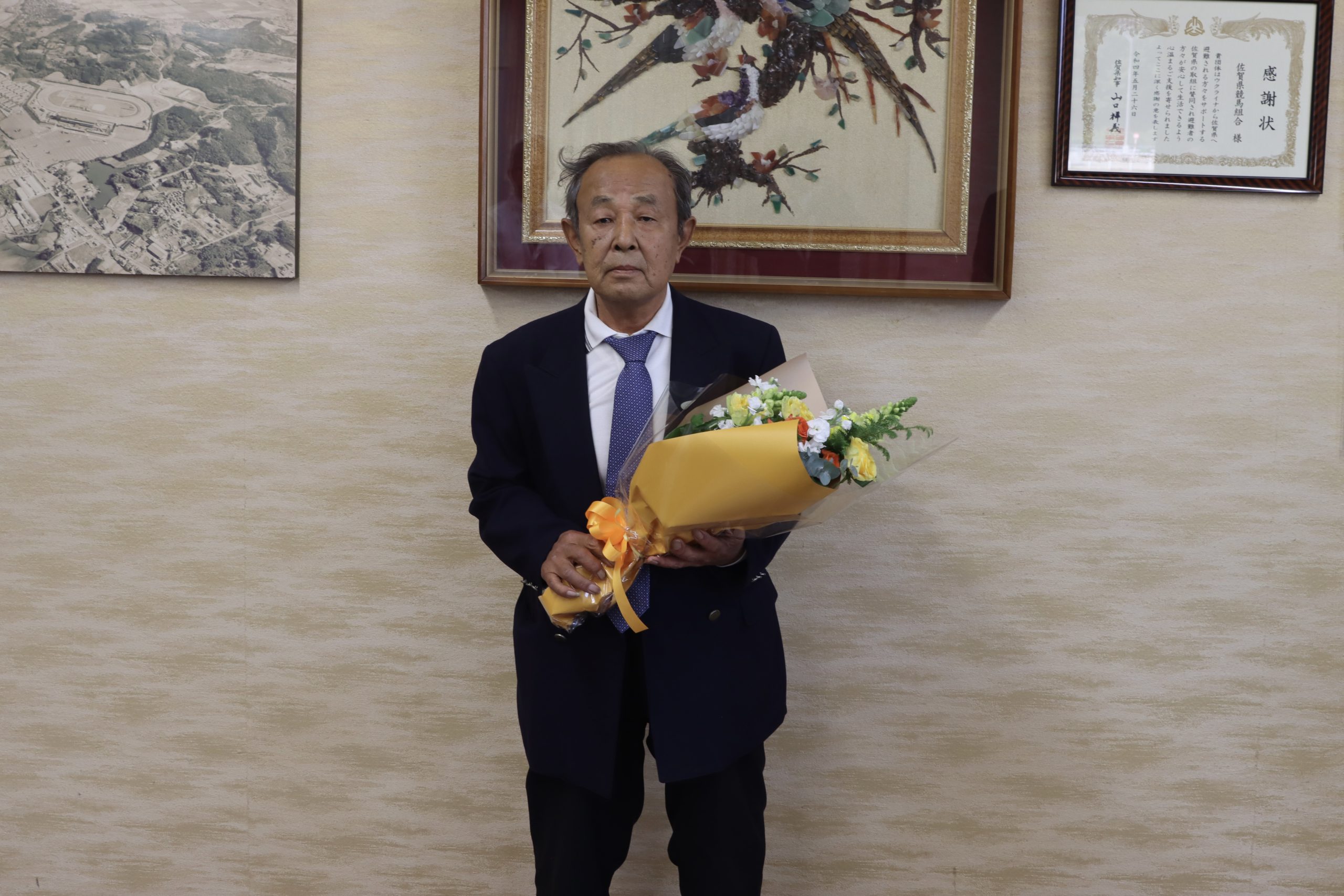 武藤敏明調教師の勇退について 2025.11.16 佐賀競馬場所属の下記調教師は、本日 令和7年11月16日付で調教師を勇退することになりましたのでお知らせいたします。 【プロフィール】 武藤 敏明(むとう としあき) 生年月日:1950年8月31日生 初出走日:1989年10月7日 初勝利日:1990年1月28日 生涯成績:8,607戦649勝 (2025年11月15日時点) ◆武藤調教師 感謝状授与式◆ 本日 令和7年11月16日(日)、事務局 副管理者室において「武藤調教師感謝状授与式」を実施いたしました。
