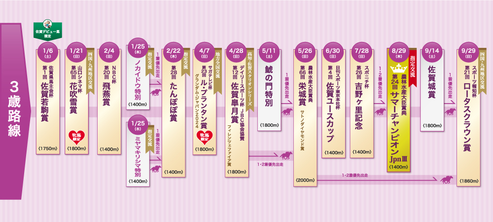 重賞特集ページメニュー 実施概要 レース体系 出走予定馬 出馬表 データ分析 インターネット投票 アクセス情報 騎手リーディング 過去優勝馬 2024年実施概要 競走名 スポーツ報知杯 第21回ロータスクラウン賞 実施日 2024年9月29日(日) 距離 1,860m 交流種別 〔四国・九州地区交流〕 出走資格 3歳 1着賞金 800万円 レース体系 出走予定馬 ウェンティ ウルトラクロス カシノルーカス キトーウィン グラインドアウト ケンタッキーグレイ シーブレ デッドフレイ トゥールリー トレベルオール バレンタインガール ラインフォルテ 過去5年優勝馬 歴代優勝馬 実施日 優勝馬名 騎手名(所属) 調教師名(所属) レース結果 2023/8/13 ブレイブアモーレ 石川慎将(佐賀) 手島勝利(佐賀) 競走成績 レース映像 2022/9/25 ヴェレノ 畑中信司(高知) 宮川真衣(高知) 競走成績 レース映像 2021/9/12 トゥルスウィー 山口勲(佐賀) 北村欣也(佐賀) 競走成績 レース映像 2020/8/16 マイネルヘルツアス 倉兼育康(高知) 別府真司(高知) 競走成績 レース映像 2019/9/1 スーパージンガ 真島正徳(佐賀) 渡辺博文(佐賀) 競走成績 レース映像