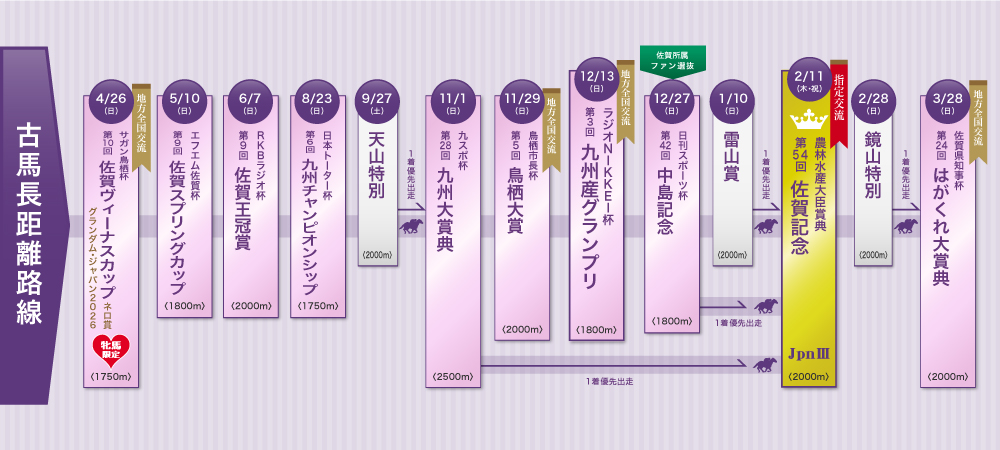重賞特集ページメニュー 実施概要 レース体系 出走予定馬 出馬表 データ分析 インターネット投票 アクセス情報 騎手リーディング 過去優勝馬 2026年実施概要 競走名 サガン鳥栖杯 第10回佐賀ヴィーナスカップ(ネロ賞) 実施日 2026年4月26日(日) 距離 1,750m 交流種別 グランダム・ジャパン2026〔地方全国交流〕 出走資格 4歳以上牝馬 1着賞金 700万円 レース体系 レース体系詳細 出走予定馬 アオイノユメ ヴィーリヤ エスシーヤマト キミノハート サノノエスポ スマートアンバー ソイジャガー ダンツドール ニシノリンダ パトリオットゲーム ベイデンマリーナ ローリエフレイバー 過去5年優勝馬 歴代優勝馬 実施日 優勝馬名 騎手名(所属) 調教師名(所属) レース結果 2025/4/20 セブンカラーズ 山田祥雄(愛知) 川西毅(愛知) 競走成績 レース映像 2024/4/21 アンティキティラ 多田羅誠也(高知) 別府真司(高知) 競走成績 レース映像 2023/4/16 ジュランビル 下原理(兵庫) 福永敏(大井) 競走成績 レース映像 2022/5/22 ダノンレジーナ 本橋孝太(船橋) 小久保智(浦和) 競走成績 レース映像 2021/5/23 ロカマドール 山崎誠士(川崎) 山崎尋美(川崎) 競走成績 レース映像